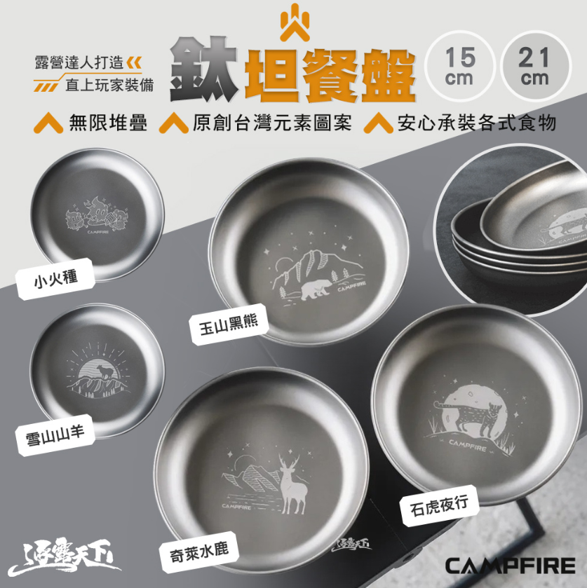 而 CAMPFIRE 鈦坦餐盤以 純鈦材質 打造,