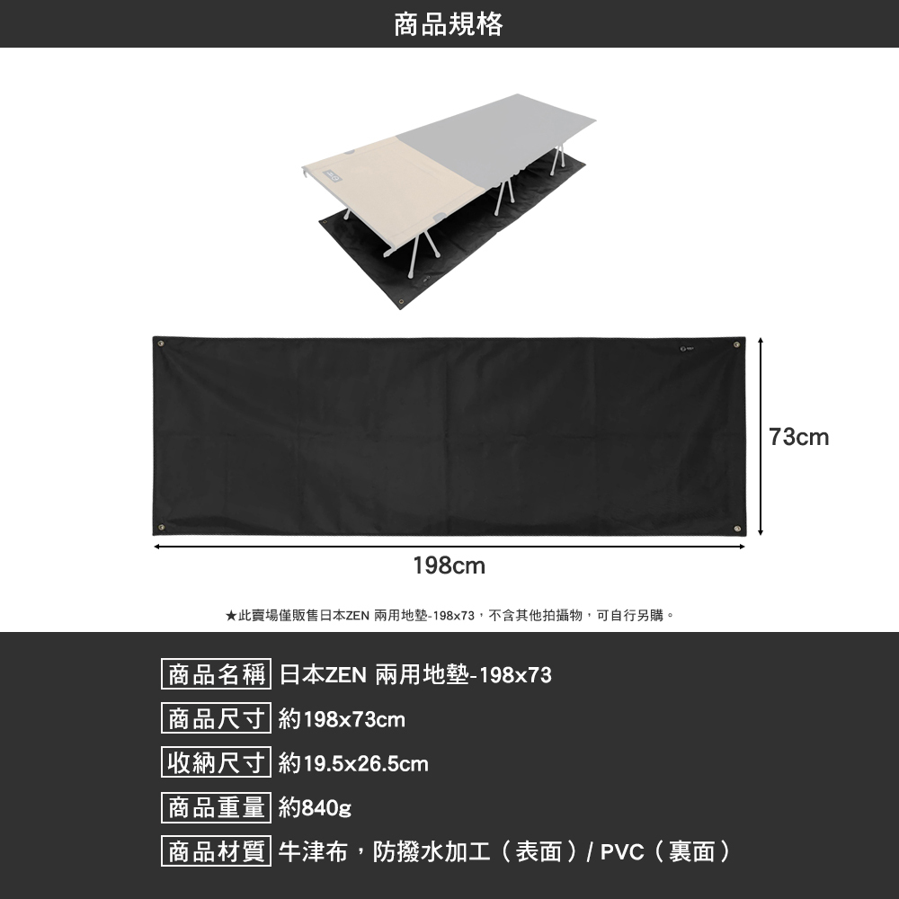 198x73cm:適合行軍床下、入口空間、天幕側邊角落與車內鋪層。
