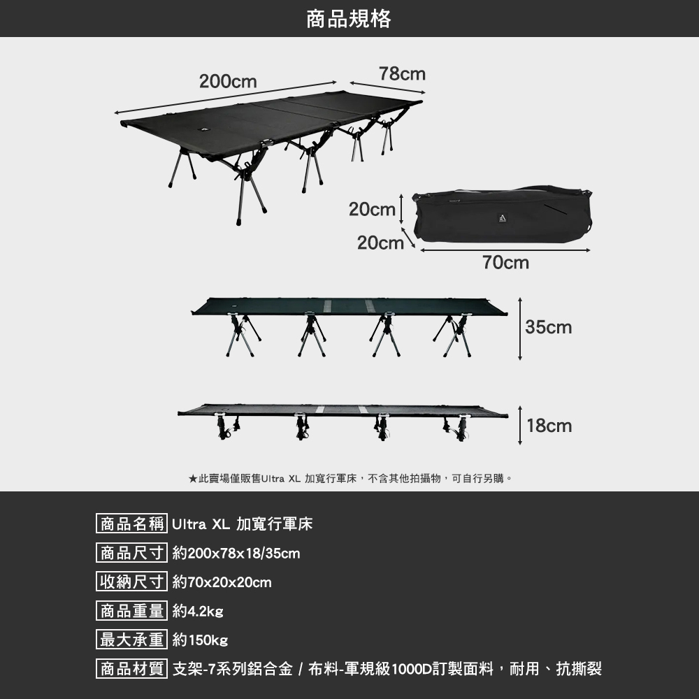 商品名稱:Ultra XL 加寬行軍床