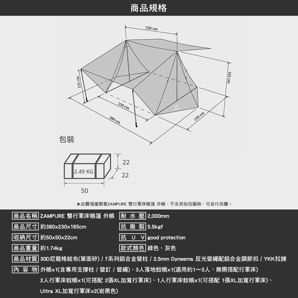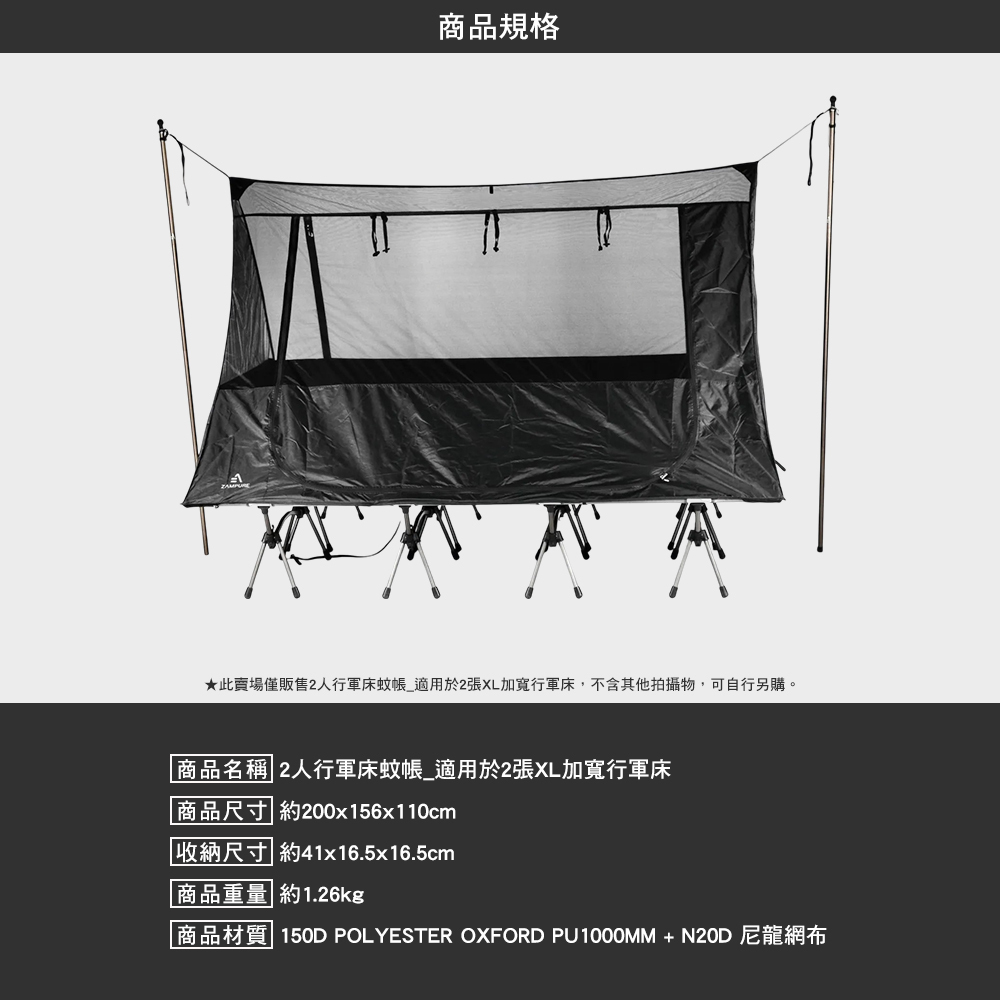 商品名稱:ZAMPURE 雙行軍床帳篷 外帳