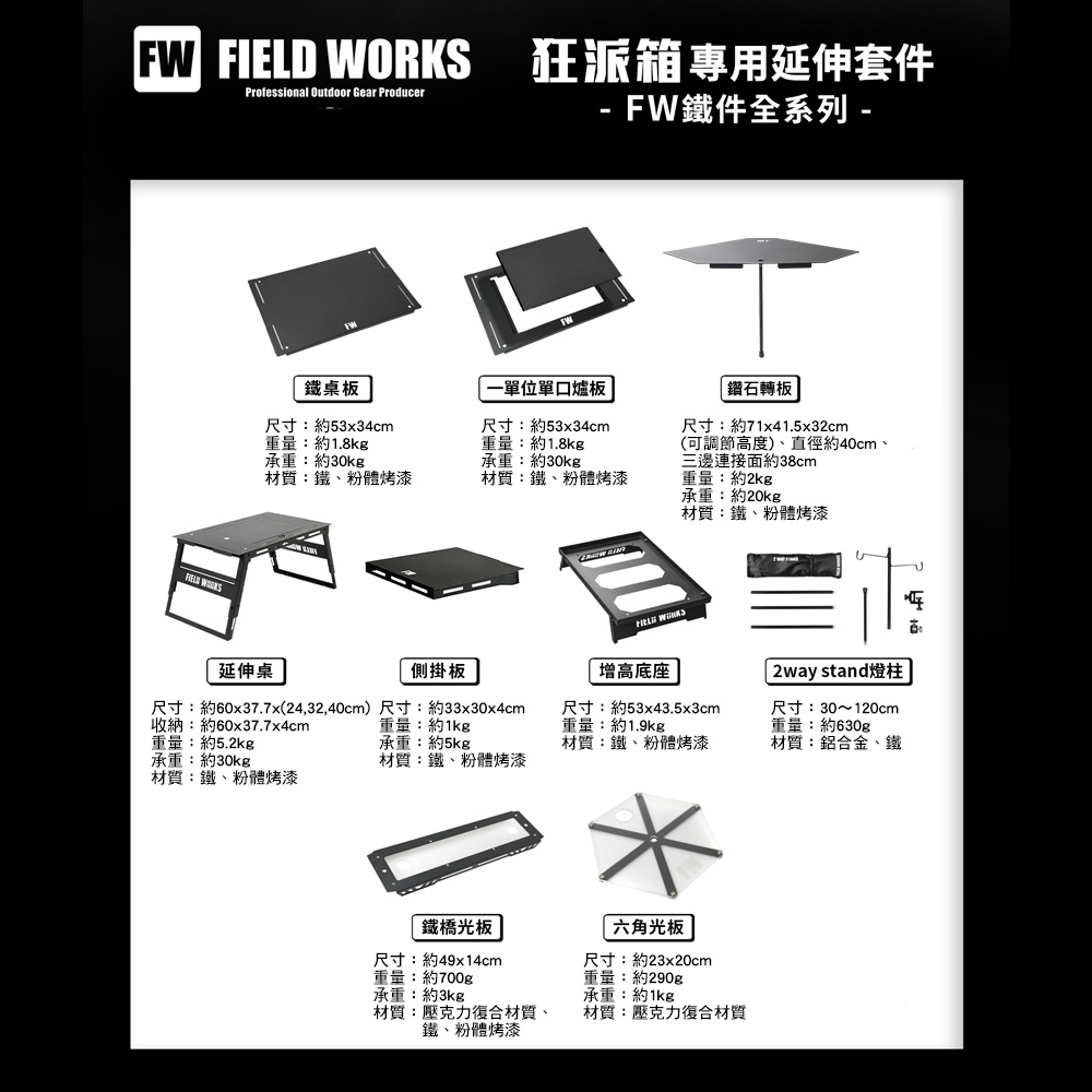 多樣化的各式鐵件延伸套件可選購,組合出屬於自己風格的露營裝備!