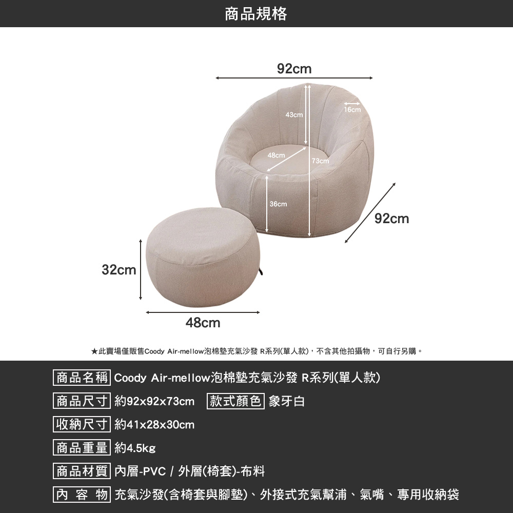 ★此賣場僅販售Coody Air-mellow泡棉墊充氣沙發,不含其他拍攝物,可自行另購。