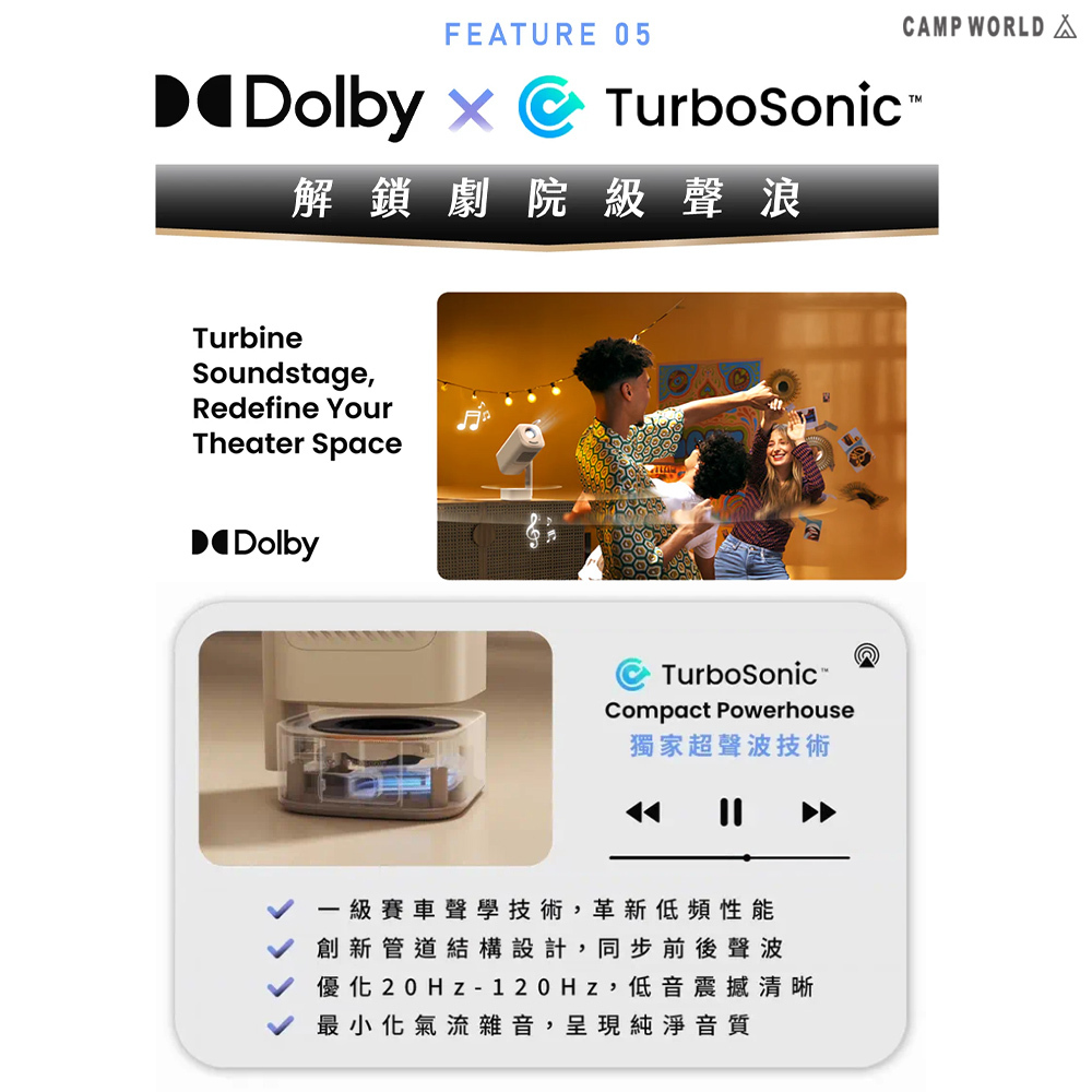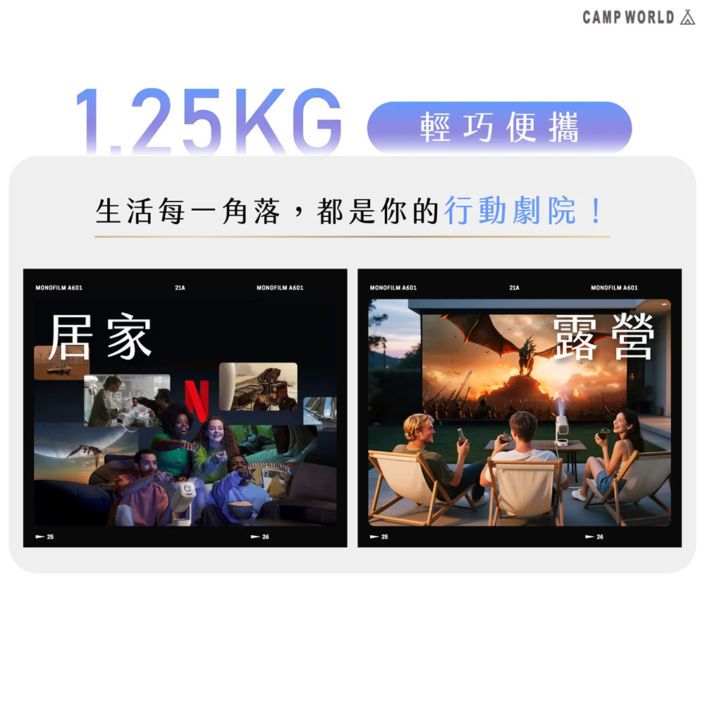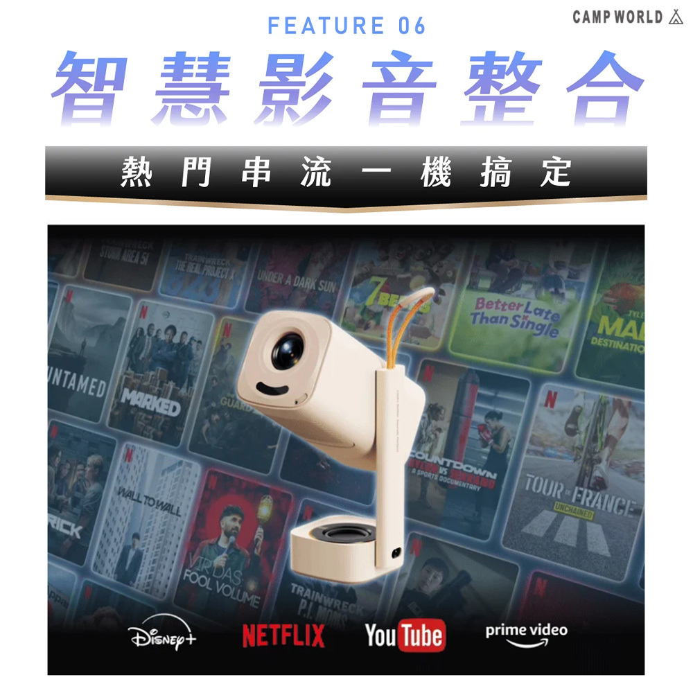 .180度雲台隨心轉,無需外接支架即可投射至牆面或天花板,適用臥室、帳篷、戶外等多種場景,在任何場景下都能沈浸式體驗。