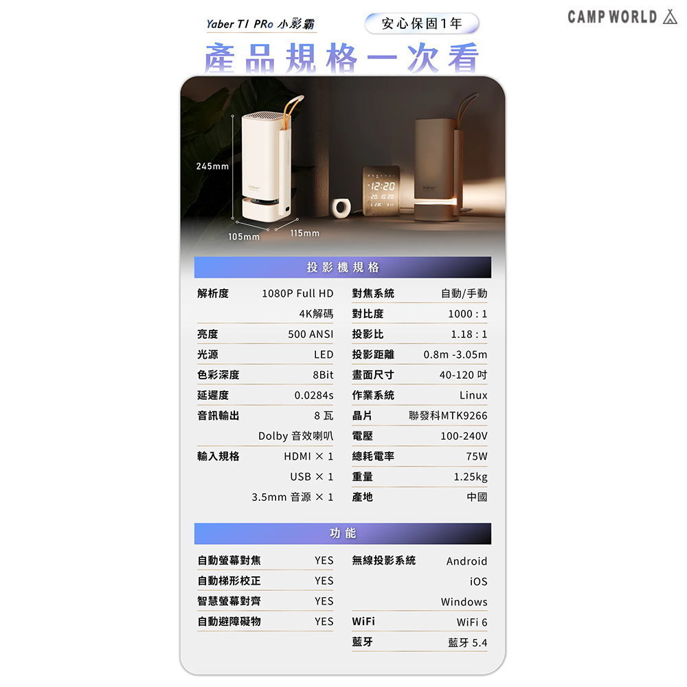商品名稱:YABER T1 PRO 小影霸