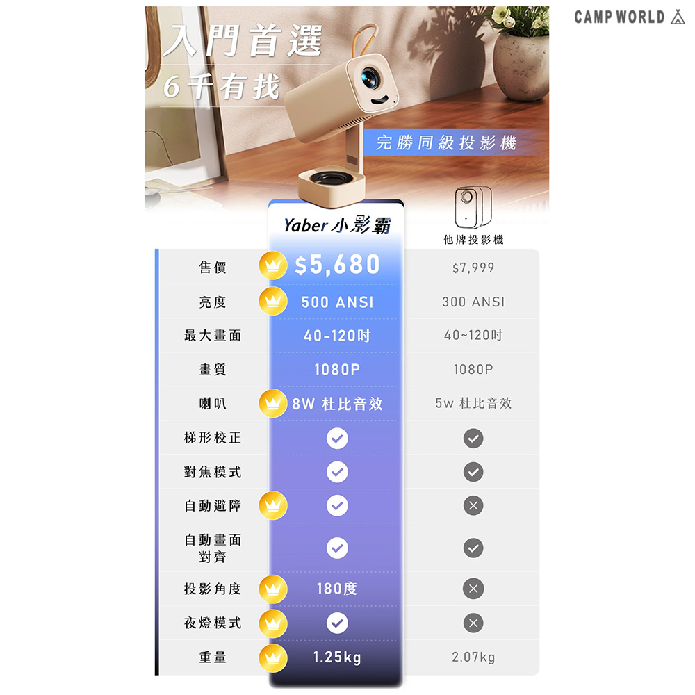 .採用LED光源,搭配原生1080P Full HD解析度與HDR10技術,還有500ANSI流明亮度,細節銳利、色彩更真實。
