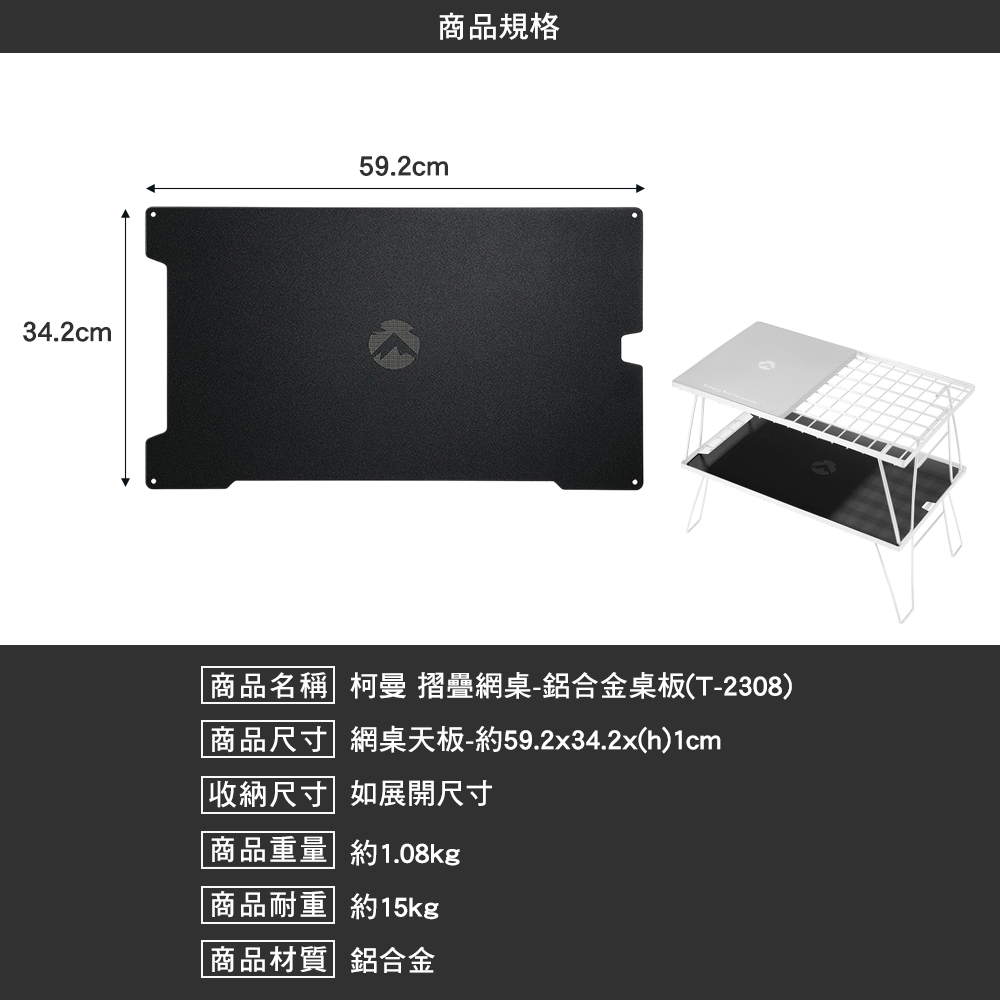 ★此賣場僅販售柯曼 摺疊網桌-鋁合金桌板,不含其他拍攝物,可自行另購。