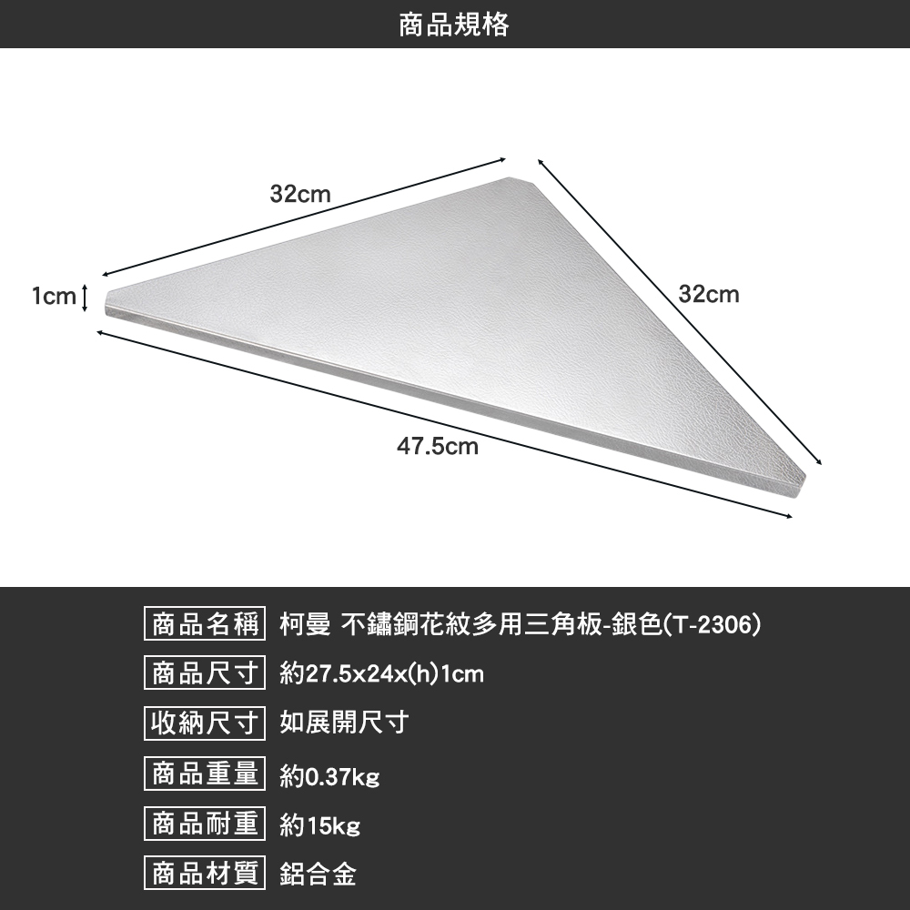 商品名稱:柯曼 不鏽鋼花紋多用桌三角板-銀色