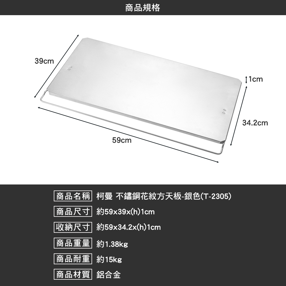商品名稱:柯曼 不鏽鋼花紋方天板-銀色