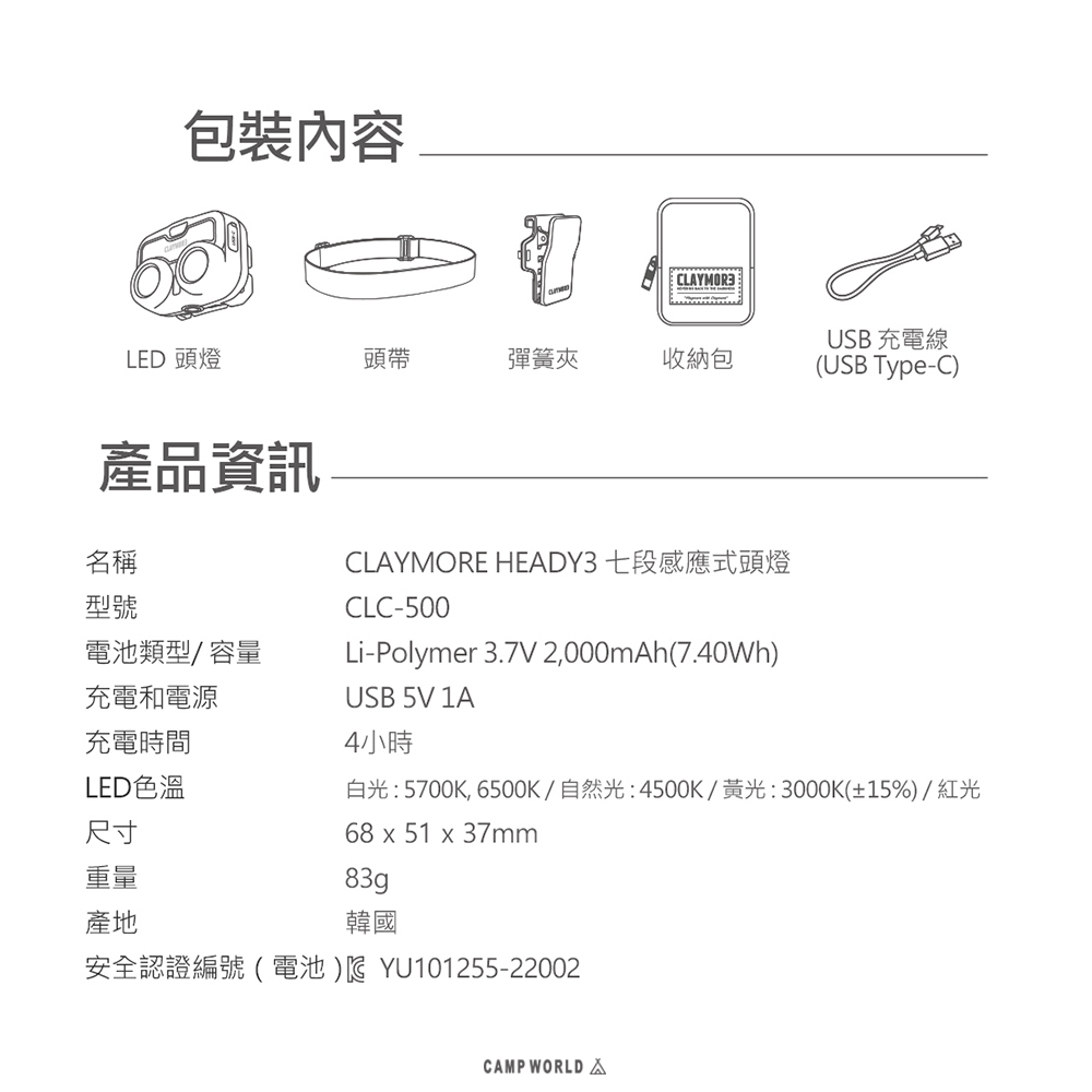 ★此賣場僅販售CLAYMORE HEADY3 七段感應式頭燈-2色,不含其他拍攝物,可自行另購。