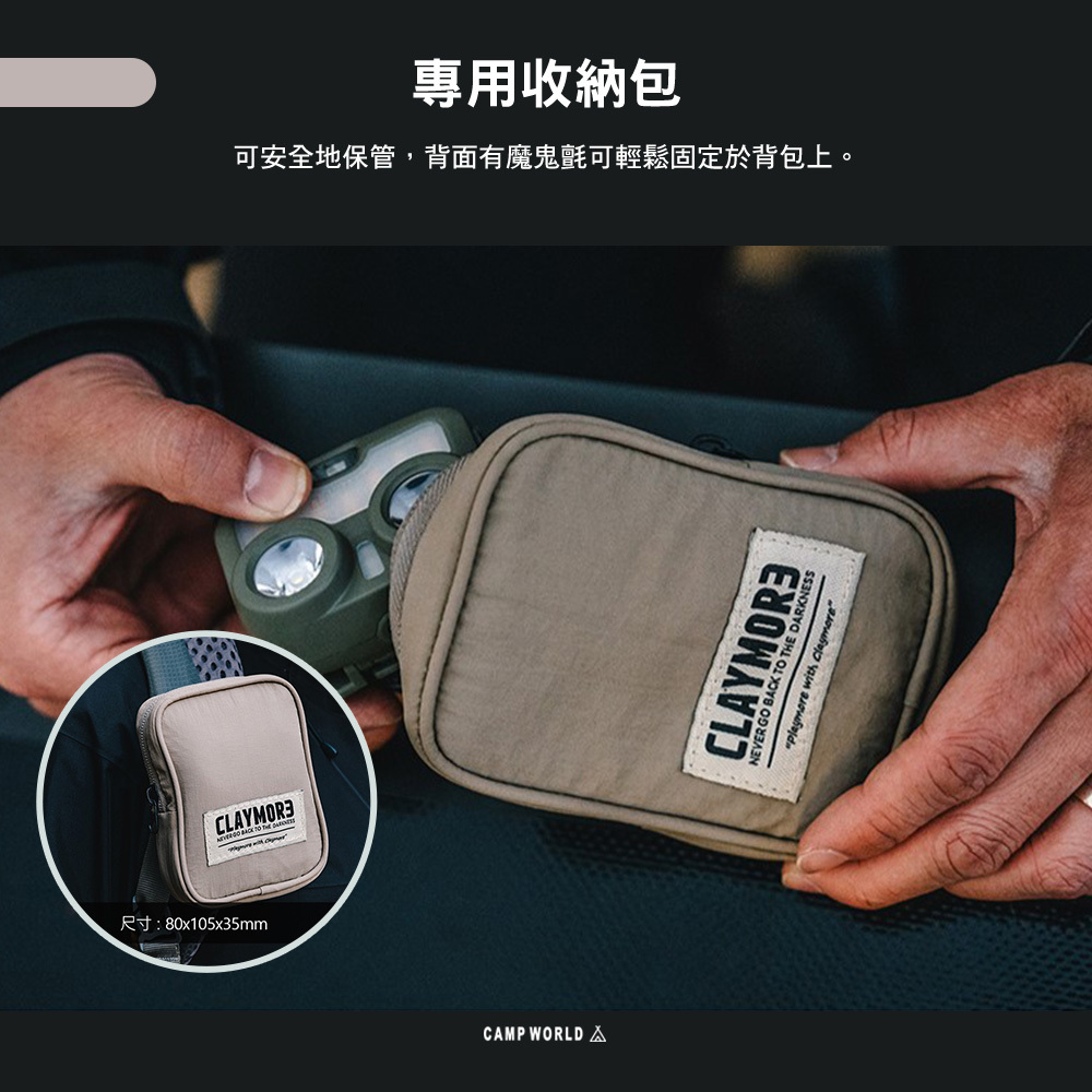 .提供專用收納包,可以整齊、安全的存放頭燈和其他內容物,收納包背面有魔鬼氈,可以輕鬆固定在背包等物品上。