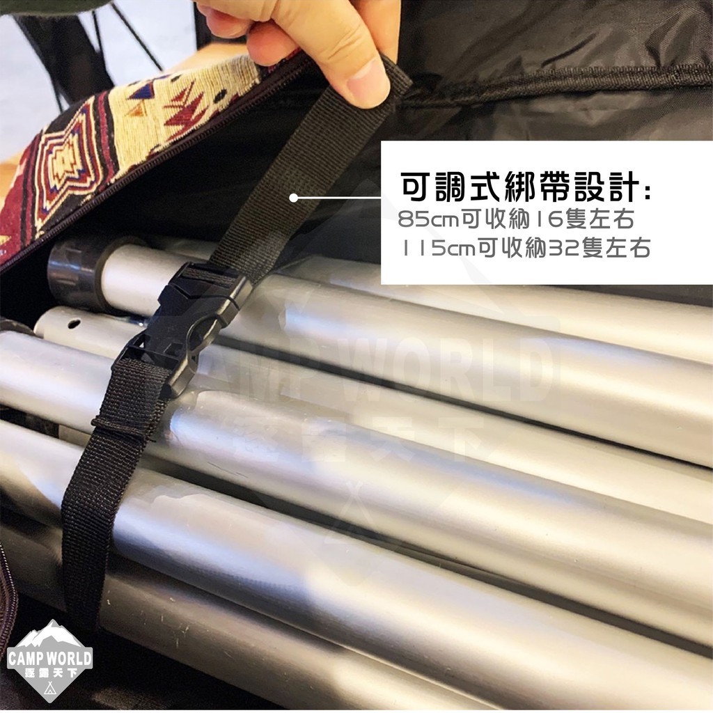 115cm營柱袋則可以收納32隻單節115CM內、直徑33mm營柱~