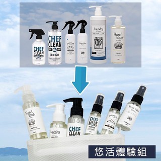 【商品特色】六種熱銷單品一次體驗出門旅行輕鬆攜帶,擺脫麻煩的分裝流程介紹給親友使用,小ml數更方便衣物驅蟎噴霧 40ml淨毒五郎長年銷售冠軍,榮獲SNQ防疫標章認證!萃取自尤加利、薰衣草、檸檬等植物性原料,只要3~4天噴一次,就能打造低蟎環境。成分安全、不含西藥,家有孕婦、寵物、蠶豆症患者都可以安心使用。經歐洲實驗室證實,六週後可有效減少99%蟎蟲數量。-蔬果清潔劑 20ml使用食品洗劑級高規格製作,噴兩下,輕鬆帶走蔬果上殘留的脂溶性農藥;且主原料為植物性來源萃取,如南瓜、葡萄籽、椰子油等,溫和無害的植物成分,拿來洗寶寶的奶瓶也好安全。-消臭洗衣精 60ml這是一款無添加香精的中性洗衣精,適用於各種材質;並添加香茅酵素,可有效消除異味,還原衣物最自然的味道。此外我們採用高濃縮配方及按壓式設計,節省洗衣的時間和洗劑的用量;並使用100%再生塑膠瓶器,朝友善環境的目標邁進。-酵素手洗精 60ml添加植物蛋白酵素,能有效去除衣物污漬,洗完留下淡淡的療癒香味。植物來源的溫和成分,適合用來清洗寶寶及貼身衣物,擁有富貴手、敏感肌膚的人接觸到也沒有問題!-碗盤清潔劑 60ml一款以食品洗劑級高規格製作的洗碗精,針對重油汙所設計,能有效洗去碗盤上的殘留油污;採用低泡沫設計,好沖淨不易殘留。成分為植物性來源,並額外添加蘆薈萃取物,洗的過程不會咬手,適合擁有富貴手或肌膚敏感的朋友。-除臭噴霧(微風款)20ml利用從植物蛋白裡提取的酵母酵素Deoplex,快速抑制、分解環境中的異味分子,讓空氣如同拂面而來的清新微風。適用於貓砂、廁所、廚餘、尿布桶等臭味源,寵物接觸到也無害喲!【商品規格】內容物&成分 : 衣物驅蟎噴霧 40ml : Lavender extract, Eucalyptus extraction Lemon extract, Chlorphenesin, pure water蔬果清潔劑 20ml : 葡萄籽萃取、南瓜酵素、葡萄糖衍伸物(APG)、純水、甜菜鹼界面活性劑、食品級檸檬酸、食鹽消臭洗衣精 60ml :椰子油系界面活性劑,甜菜鹼界面活性劑,葡萄糖系界面活性劑,香茅衍生物,檸檬酸,純水酵素手洗精 60ml : 蛋白酵素, 南瓜酵素, 蘆薈萃取液, 香茅衍生物,椰子油系界面活性劑, 甜菜鹼界面活性劑, APG,純水,香精碗盤清潔劑 60ml : 南瓜酵素, 椰子油系界面活性劑, 甘油, 甜菜鹼界面活性劑, 純水, 葡萄籽萃取液, 葡萄糖衍生物(APG), 蘆薈萃取液, 食品級檸檬酸, 食鹽除臭噴霧(微風款)20ml : 高效植物蛋白酶除味劑、繖花醇、蛋白酶、乙醇、葡萄糖、去離子水。產地:台灣保存期限:3年