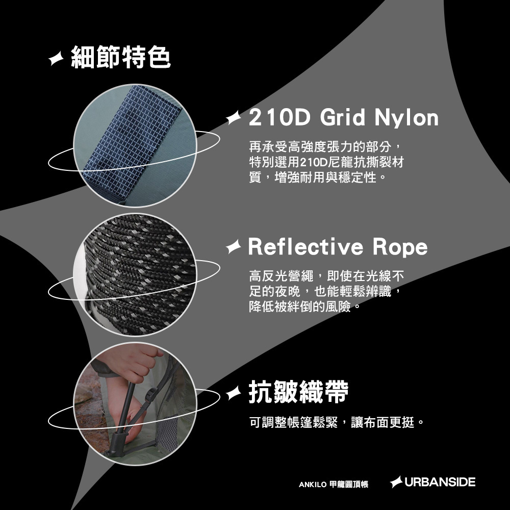 ★此賣場僅販售URBANSIDE ANKILO 甲龍圓頂帳,不含其他拍攝物,可自行另購。
