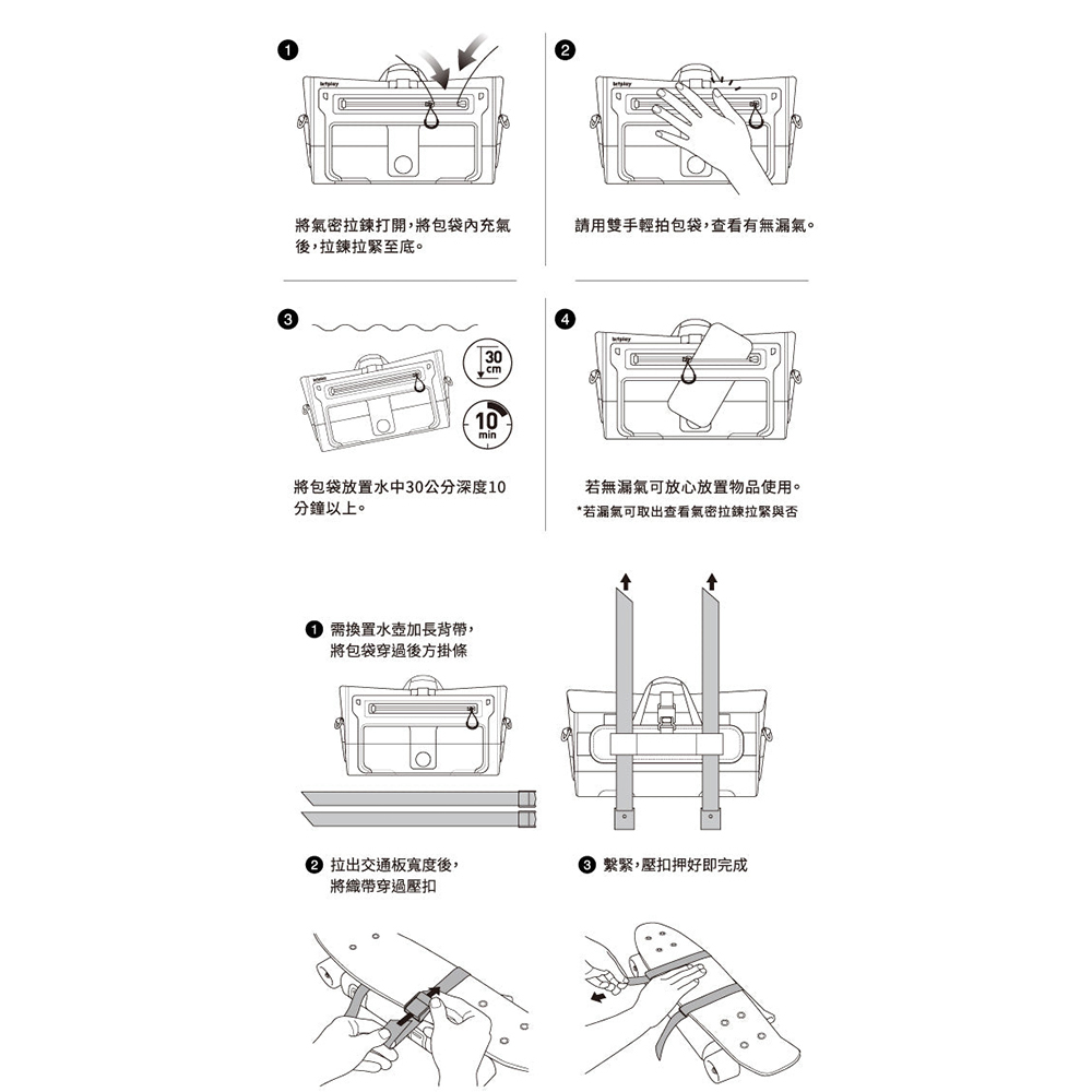 使包袋可浸到水下一公尺維持約30分鐘。