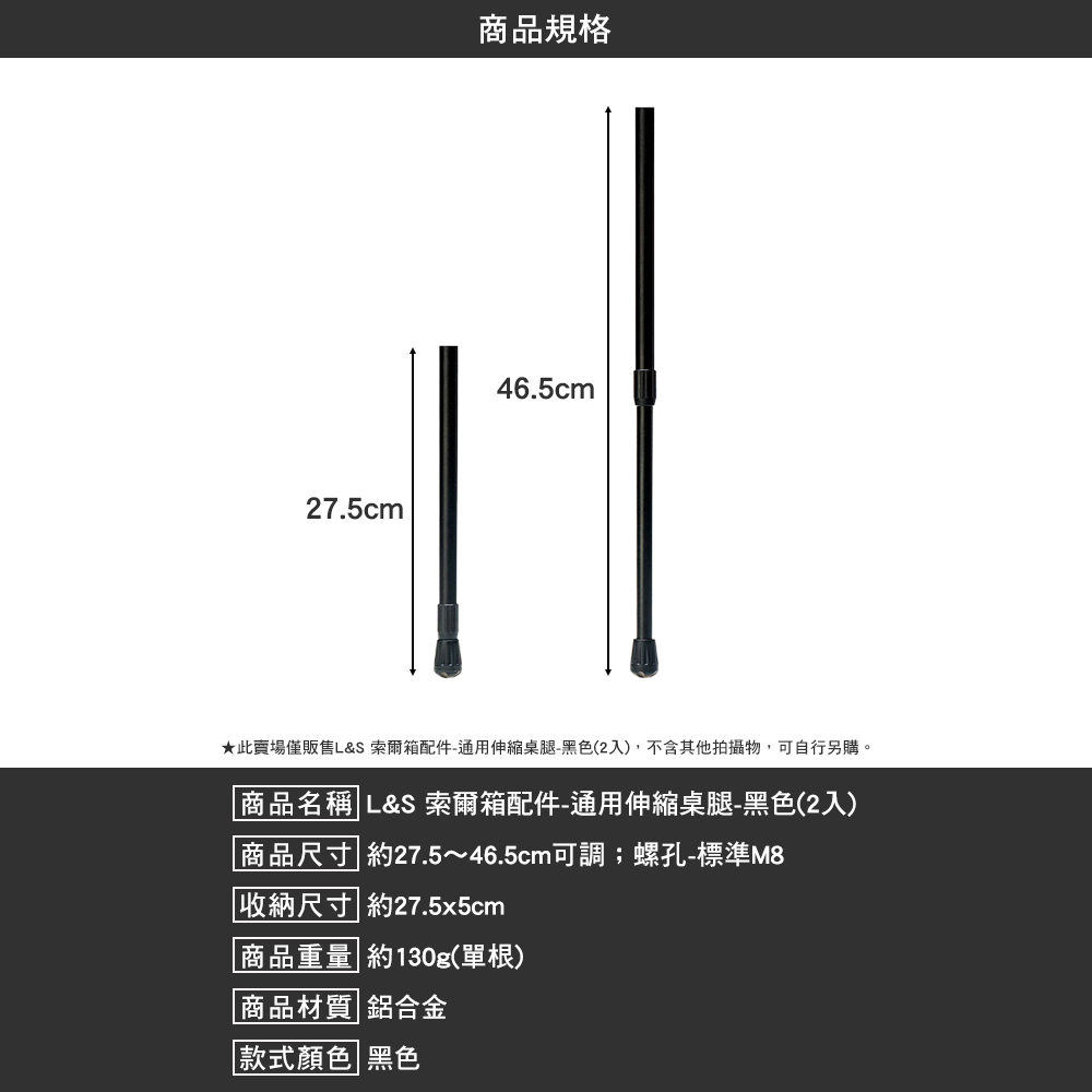 商品名稱:L&S 索爾箱配件-通用伸缩桌腿-黑色(2入)
