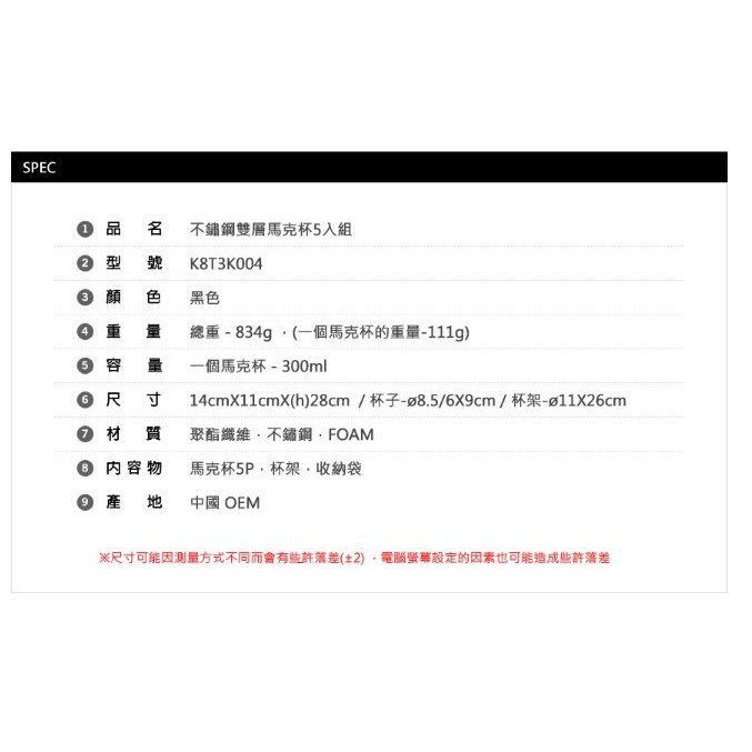 尺寸:14x11x28cm / 杯子 8.5x6x9cm / 杯架 11x26cm